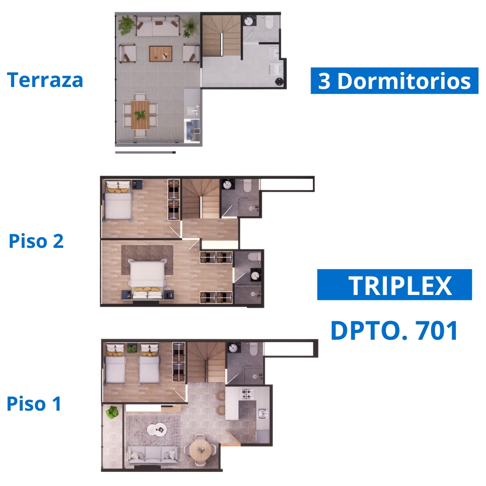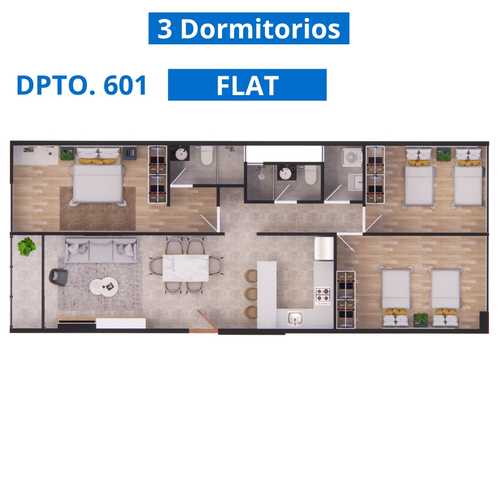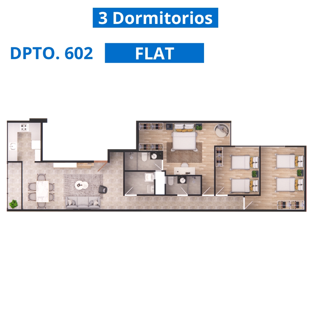 Hemos diseñado cuidadosamente departamentos familiariares, desde 105m2 para aquellos que buscan depas con amplios espacios funcionales y una distribucion ezcelente para fluir en casa con confort.